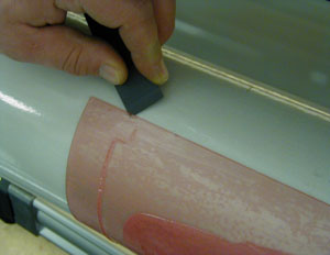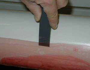 从版的边缘开始,插入工具从胶带和版基的当中进入 1/8”-1/4” 深。